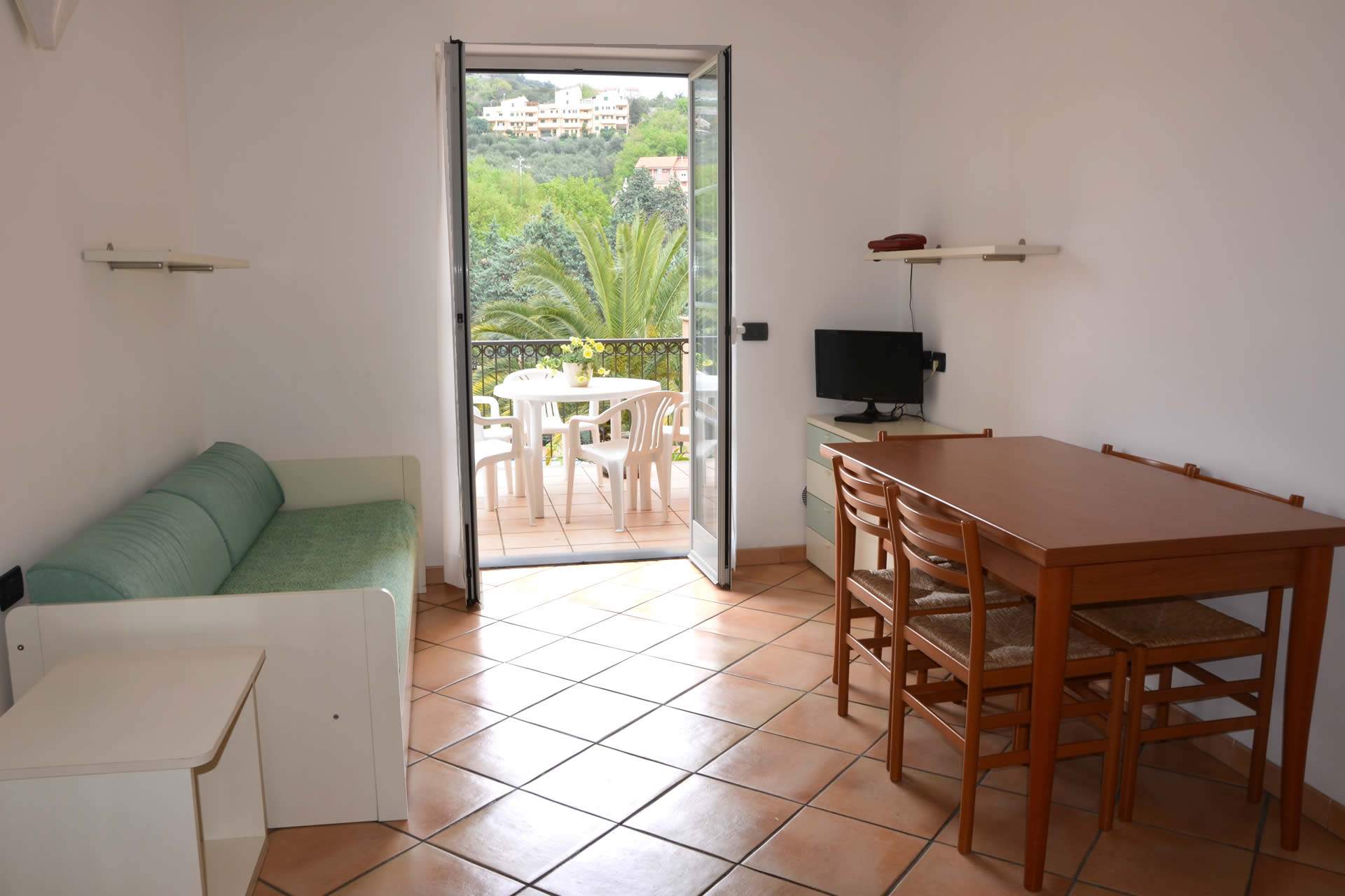 Appartamento composto da camera matrimoniale, zona soggiorno con angolo cottura completamente arredato, divano letto estraibile ed un ulteriore letto singolo, bagno con doccia.